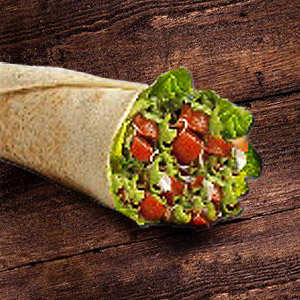 Разложить овощи и зелень на предварительно разогретый в микроволновке хлеб и свернуть кульком.
